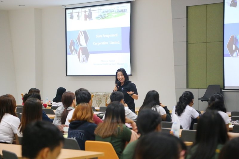 วิทยากร : คุณอิสิญา สังข์ศิริ (ผู้จัดการฝ่ายอาชีวอนามัยและความปลอดภัย บริษัท สยามเซมเพอร์เมด จำกัด จังหวัดสงขลา)